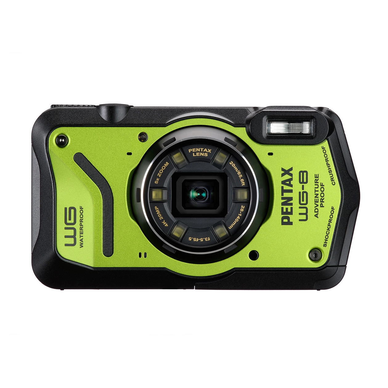 De Pentax WG-8 compact camera Groen is ontworpen voor avontuur, met uitstekende waterdichte, schokbestendige en koudebestendige prestaties.