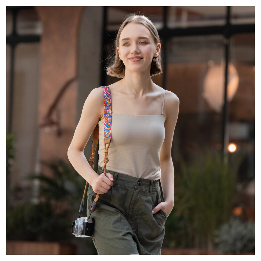 Met een lengte die eenvoudig verstelbaar is van 95-110 cm en de mogelijkheid om als sling te gebruiken, past deze riem zich aan jouw behoeften aan. Het ontwerp maakt het bevestigen en verwijderen van je camera snel en eenvoudig.