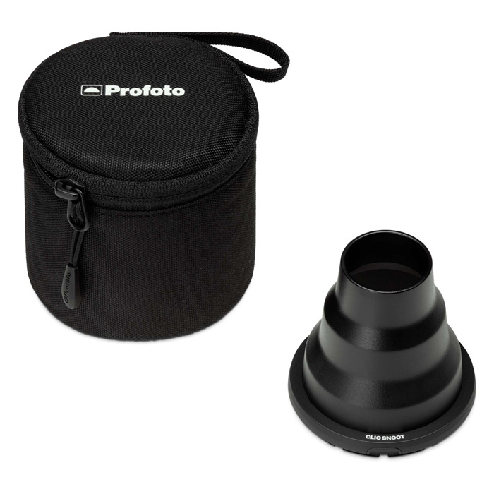 De Profoto Clic Snoot is compatibel met flitsers uit de A-serie en kan eenvoudig worden bevestigd en losgemaakt met behulp van een ingebouwde magnetische houder. De snoot vernauwt de bundelspreiding van de flitser en maakt selectieve verlichting mogelijk, waarbij het licht in een zachte cirkel wordt getunneld met een diameter die afneemt naarmate de flitser dichterbij wordt gebracht. De snoot is stapelbaar met andere Clic modifiers en wordt geleverd met een beschermhoes.