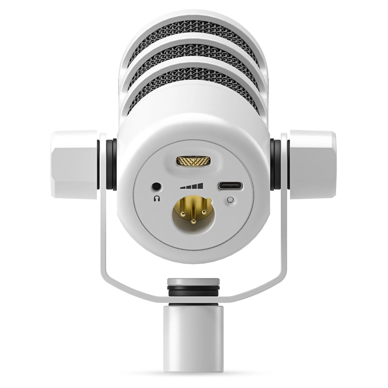 De Rode PodMic USB White is een robuuste dynamische microfoon met geïntegreerde DSP en ingebouwde audio-interface. De handige hoofdtelefoonaansluiting met directe monitoring maakt het mogelijk om zonder vertraging jezelf te horen tijdens het opnemen.