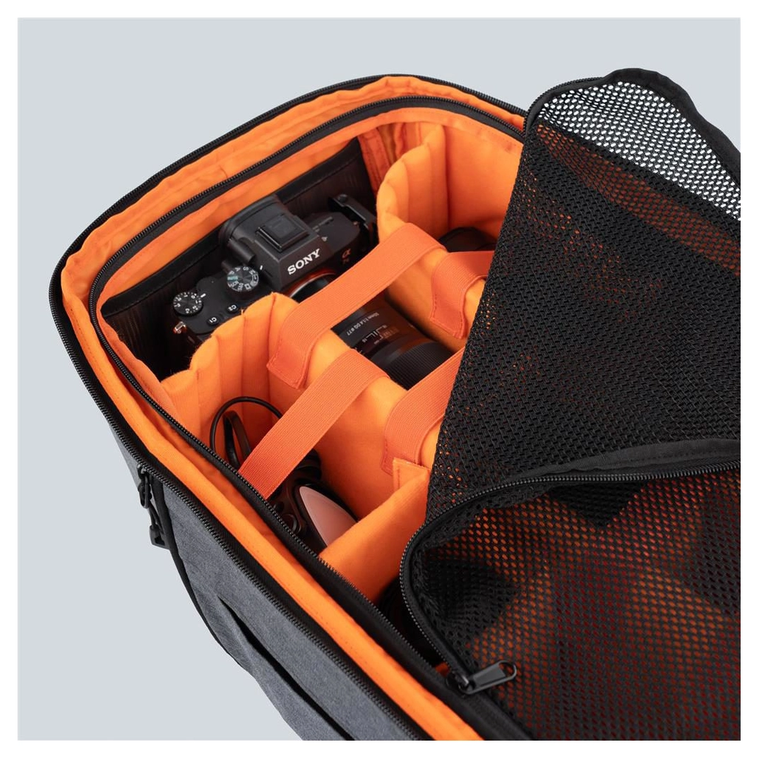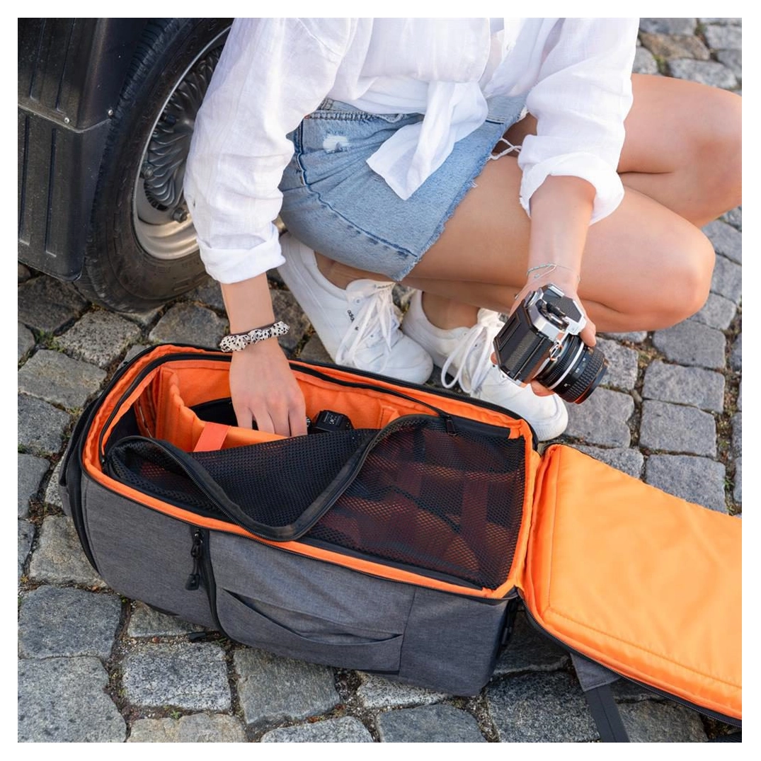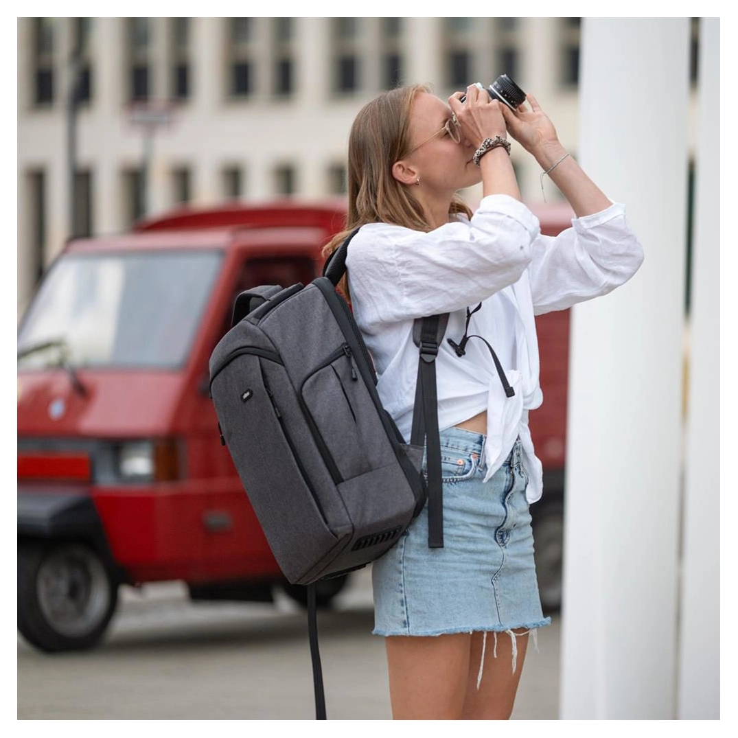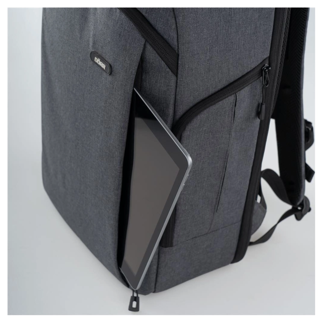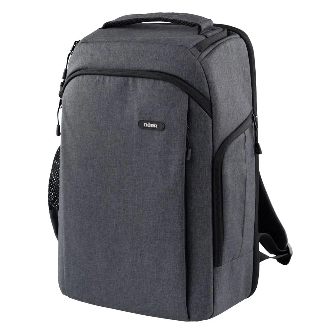 De Dorr Prag Photo Backpack in grijs is perfect voor fotografen met veel uitrusting. Hij biedt plek voor meerdere lenzen, een systeem- of spiegelreflexcamera en een 15” laptop. Met extra vakken voor accessoires en verstelbare interne dividers, kun je alles praktisch organiseren.