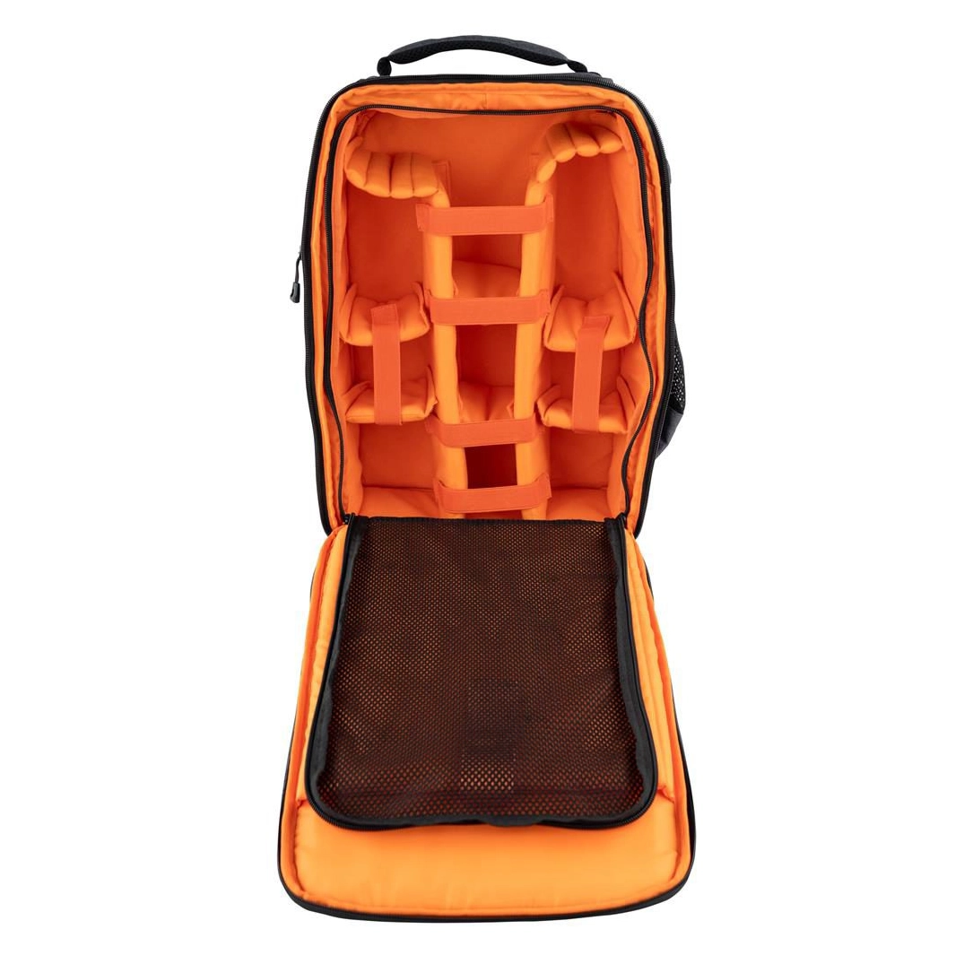 Met waterbestendige ritsen en een meegeleverde regenhoes kun je deze tas probleemloos meenemen in elk weer. Een statief draag je eenvoudig mee met de lussen aan de zijkant.