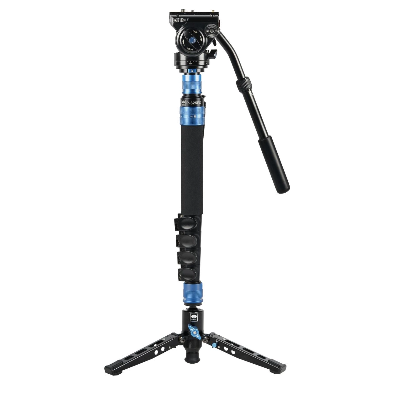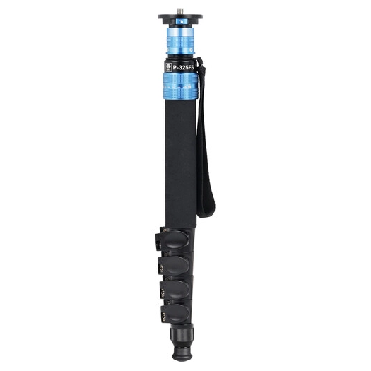 De P-325FS is een carbon fiber monopod met een draagvermogen van 6 kg en een maximale hoogte van 149.6 cm. Het monopod heeft vijf secties en weegt slechts 2.1 kg, waardoor het gemakkelijk mee te nemen is.