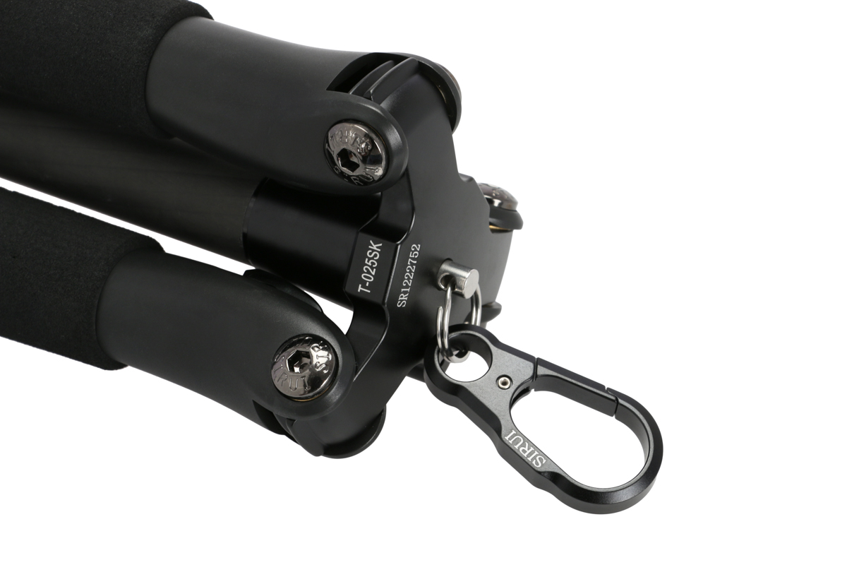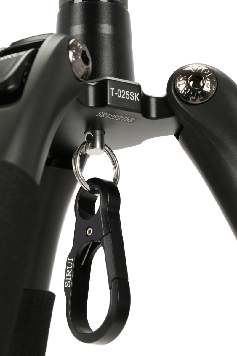 Het statief gebruik je ook zonder problemen in de kou door de geïsoleerde laag op de poten. De rubberen voeten zorgen voor een goede grip op minder ideaal terrein. Daarnaast beschikt de T-025SK over een karabijnhaak om een contragewicht aan te hangen, waarmee je statief ook bij veel wind stabiel blijft.