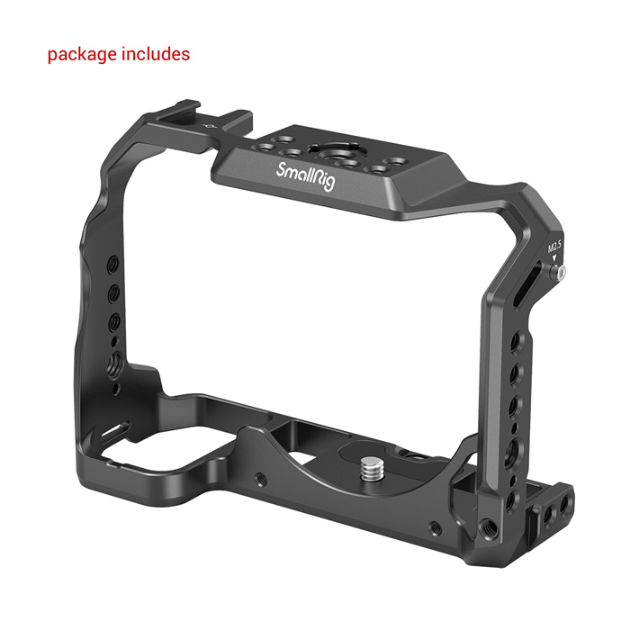 De cage wordt stevig aan de camera bevestigd via een 1/4”-20 schroef aan de onderkant en een m2.5 schroef aan de linkerkant voor extra beveiliging tegen verdraaiing. Dit zorgt voor een solide en stabiele basis, zelfs in veeleisende situaties.