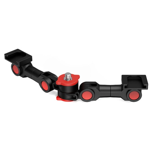 De SmallRig 3483 Dual Cold Shoe Bracket is jouw veelzijdige oplossing voor het gelijktijdig bevestigen van meerdere accessoires zoals LED-lampen en microfoons. Deze compacte bar biedt 1/4″-20 montagemogelijkheden aan de onderkant en vier volledig verstelbare secties voor maximale flexibiliteit.