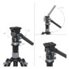 Het statief wordt geleverd met poten die vier secties hebben, waardoor je de werkhoogte snel en eenvoudig kunt aanpassen. Met de snelontgrendelingsklemmen kun je de hoogte van het statief aanpassen tot een maximum van 160 centimeter. Dit biedt je de flexibiliteit om vanuit verschillende hoeken te fotograferen en te filmen.