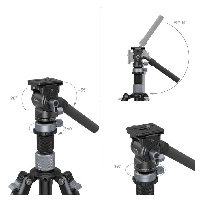 De SmallRig 4221 Travel Video Tripod Kit wordt geleverd met de 4170 Video Head, een compacte kop die speciaal is ontworpen voor video-opnames. Deze videokop beschikt over een geïntegreerde komvormige basis waarmee je de kop snel tot +10° / -10° kunt nivelleren, wat zorgt voor soepele en horizontale opnames, zelfs op oneffen terrein.