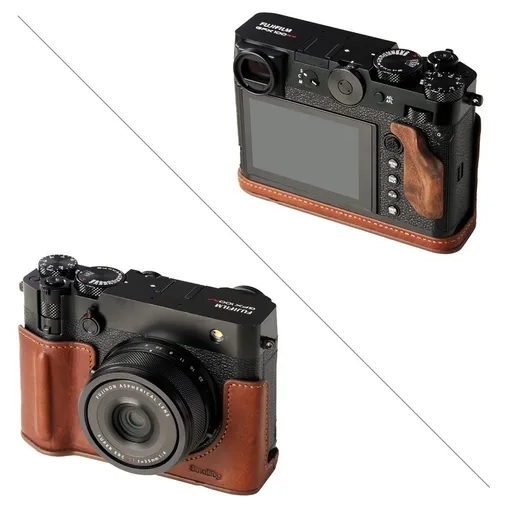 SmallRig 5268 Leather Case Kit voor Fujifilm GFX100RF: stijlvol en beschermend, met ergonomische grip en volledige toegang tot camera-interfaces.