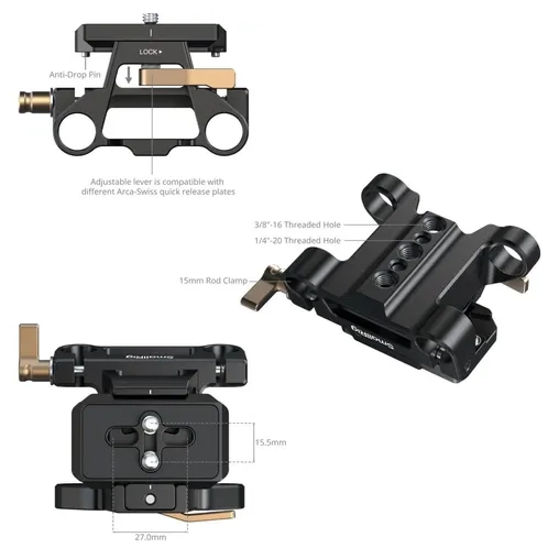 Kenmerken van de SmallRig 5365 Arca-Type Mount Plate Kit with 15mm Dual Rod Clamp