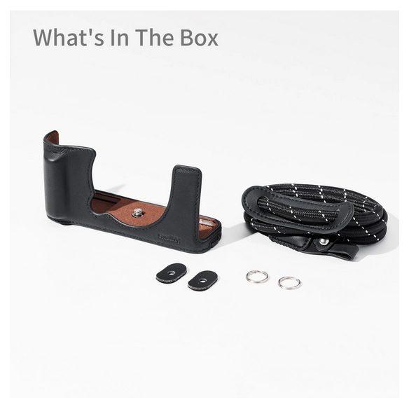 De SmallRig Leather Case Kit for FUJIFILM X-E5 (Black) 5450 combineert bescherming met pure stijl. Dankzij het gebruik van echt topgrain leer krijgt je Fujifilm X-E5 direct een elegante, retro uitstraling. De geïntegreerde foam grip zorgt voor extra houvast, terwijl de vintage gevlochten schouderriem het geheel compleet maakt. Deze set is een stijlvolle toevoeging voor elke fotograaf die waarde hecht aan comfort en karakter.