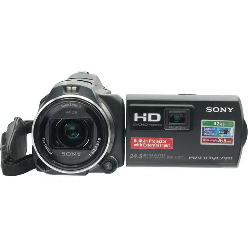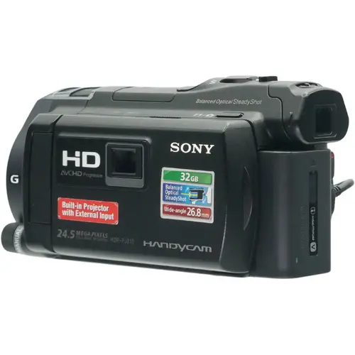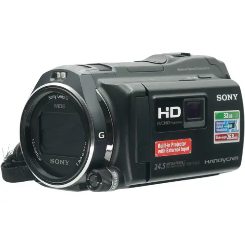 Sony HDR-PJ810E Full HD camcorder met ingebouwde 50-lumen projector, Balanced Optical SteadyShot en Wi-Fi. Film stabiel en bekijk direct op groot scherm. Conditie: De camcorder werkt naar behoren, rondom zijn er wat gebruikerssporen te vinden. Bekijk de afbeeldingen voor een betere indruk.