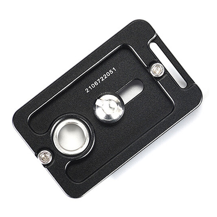De 2,4″ Arca-Type Quick Release Plate van Sunwayfoto heeft een QD-aansluiting voor het bevestigen van een optionele QD-camerariem. De plaat kan aan de onderkant van uw camera worden bevestigd via de 1/4″-20 schroef, en de optionele QD-riem kan worden bevestigd aan de QD-aansluiting aan de andere kant door quick release, en het kan net zo gemakkelijk worden verwijderd als u de camera op een Arca-kogelkop of andere steun wilt monteren. Er is ook een lus voor het vastzetten van een standaard camerariem of polsriem. Het cameraplatform is met rubber bekleed om verdraaien te voorkomen. De meegeleverde 1/4″-20 schroef kan indien nodig in de schroefgleuf van de plaat worden afgesteld.