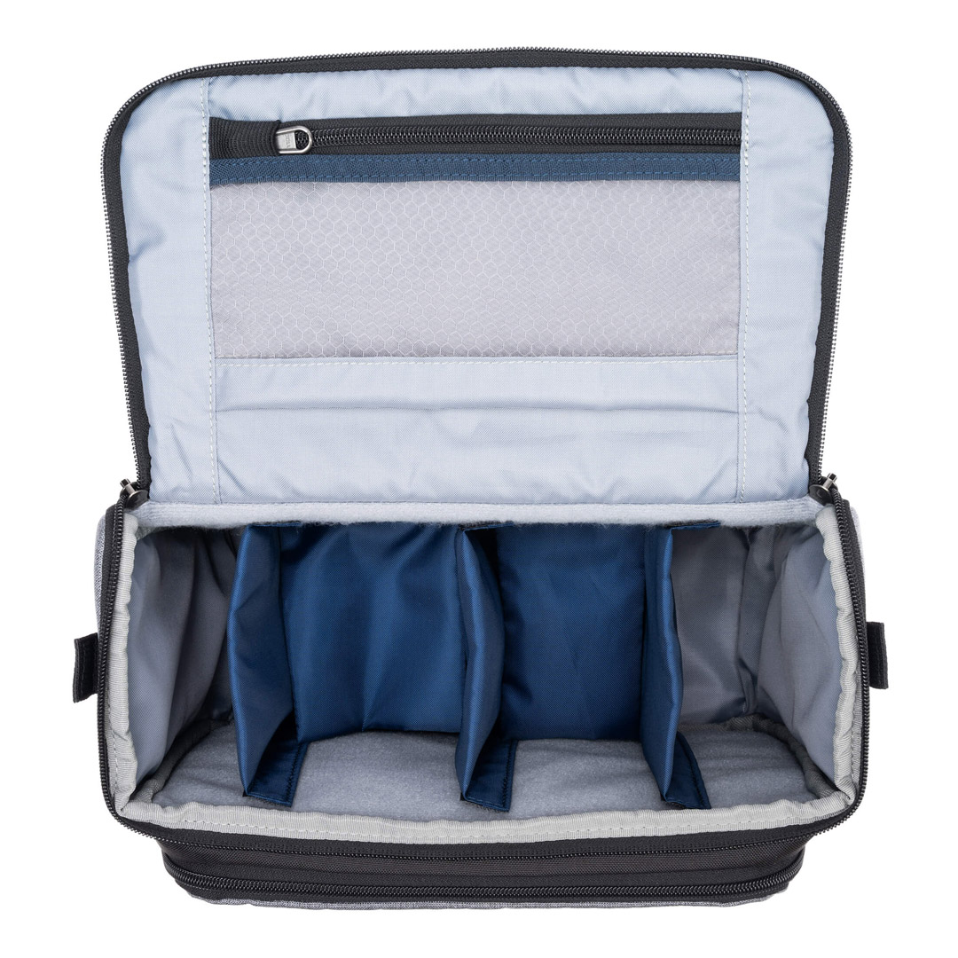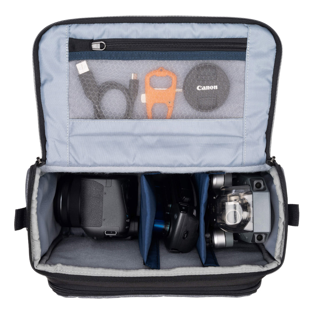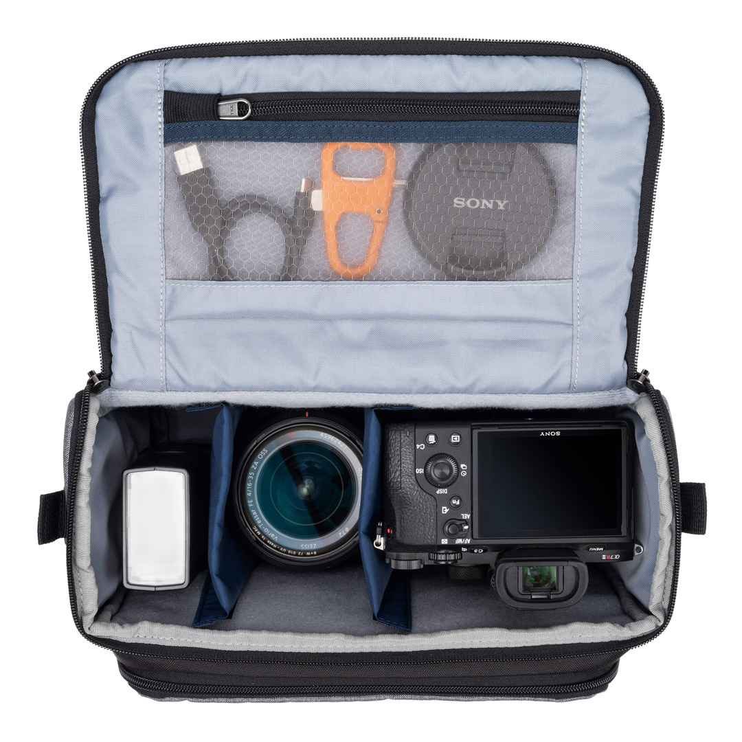 Deze tas is geschikt voor één standaard mirrorless body plus 2 tot 4 lenzen: korte tot middellange f/4 en f/2.8 zooms of korte tot middellange primes.