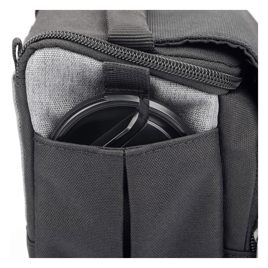 De tas biedt een scala aan handige functies, zoals een gemakkelijk toegankelijk ritsvak aan de voorzijde en een organizer voor accessoires. Speciale kaartsleuven zorgen voor een veilige opslag van CF, SD, XQD, of Micro SD kaarten. Stretchbare zijvakken bieden ruimte voor extra accessoires, terwijl een extra opbergvak onder het deksel geschikt is voor batterijen of compacte accessoires.