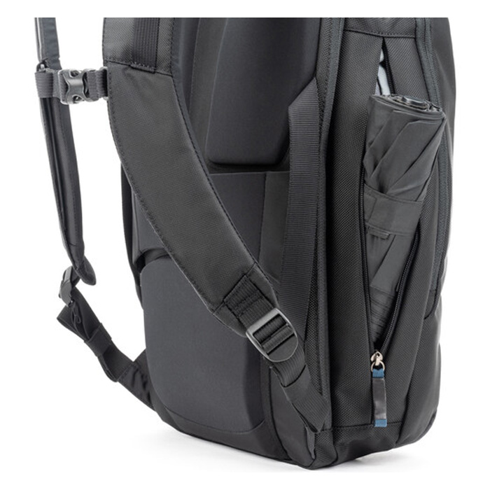 Webbed loop-bevestigingspunten op de schouderbanden laten je diverse apparaten en accessoires bevestigen voor directe toegang. Zijvakken bieden ruimte voor een waterfles en paraplu, zowel van buiten als van binnen toegankelijk.