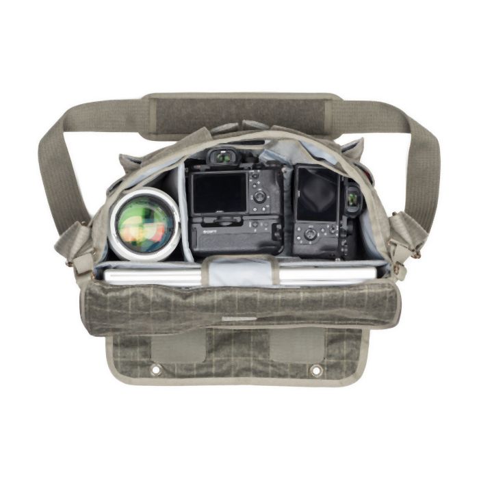 De klassieke Think Tank Retrospective 30 V2.0 Pine Stone behoudt zijn onopvallende, maar zeer functionele ontwerp. De nieuwe serie is niet alleen lichter van gewicht, maar is ook verbeterd in gebruiksgemak en veiligheid. De tas heeft ruimte voor twee DSLR\’s of systeemcamera\’s en drie objectieven. Natuurlijk is er genoeg plek voor de nodige accessoires en een 15\” laptop.