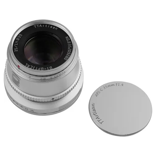 De TTartisan 35mm F/1.4 Silver Fujifilm X mount is een flexibele groothoeklens met een vast brandpuntafstand van 35 mm. Dankzij het grote maximale diafragma van F1.4 heb je veel controle over de scherptediepte, wat ideaal is voor creatieve foto’s. Ook bij weinig licht presteert deze lens uitstekend. Het handmatige scherpstellen maakt het mogelijk om tot slechts 2,3 inch dichtbij je onderwerp te komen.