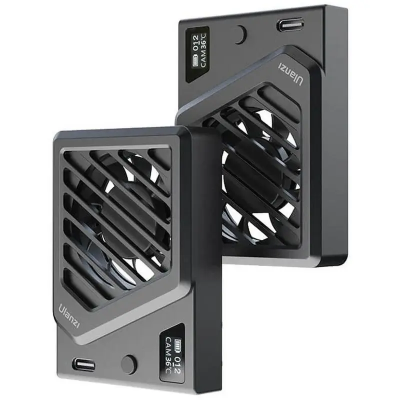 Ulanzi CA25 Camera Cooling Fan V2 (clamp) Black voert warmte af bij lange 4K‑opnames. De klem‑montage plaatst de fan precies waar hij nodig is; OLED toont temperatuur/snelheid en USB‑C laadt bij.