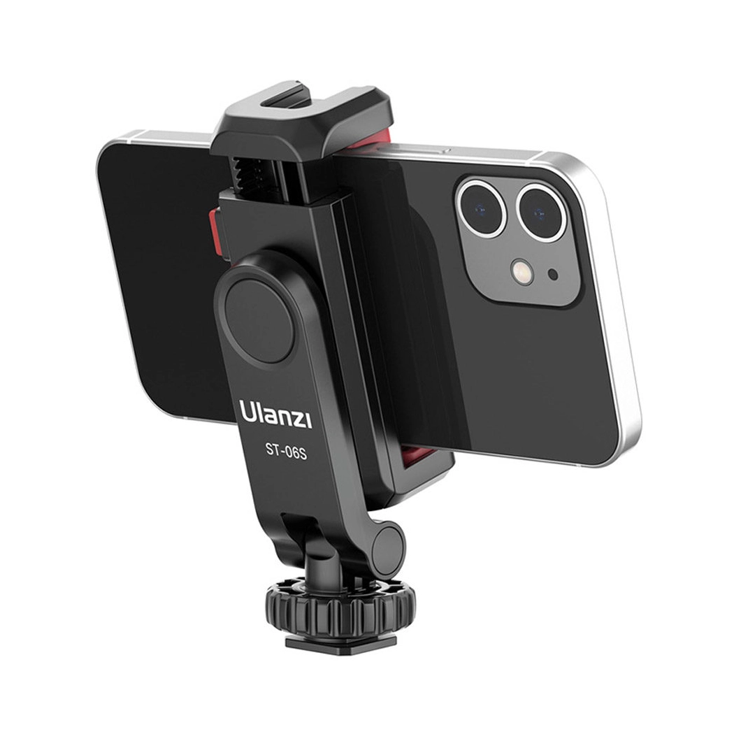 Ulanzi ST-06S Cold Shoe Phone Holder met dubbele cold shoe, 1/4″ aansluiting en 360° draaibaar ontwerp. Lichtgewicht, compact en beschermend.