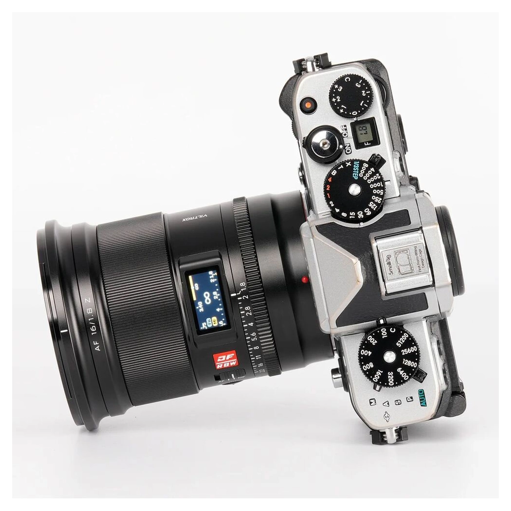 De Viltrox 16mm f/1.8 AF is voorzien van een traploze diafragmaring voor soepele overgang van scherptediepte, ideaal voor video-opnamen. Met de AF/MF-schakelaar kun je moeiteloos wisselen tussen autofocus en handmatige focus. Het ingebouwde LCD-scherm toont cruciale opname-informatie zoals objectafstand en diafragma-instellingen, wat zorgt voor een optimale controle tijdens het fotograferen.