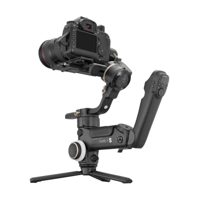 Met een draagvermogen van 6.5kg gebruik je de Zhiyun Crane 3S Gimbal Stabilizer voor professionele spiegelreflex-, systeem- en videocamera’s met een zwaar objectief bevestigd. De 3S heeft een afneembare hendel met een bedieningspaneel en OLED-scherm. Je zet de 3 assen afzonderlijk vast voor veilig transport.